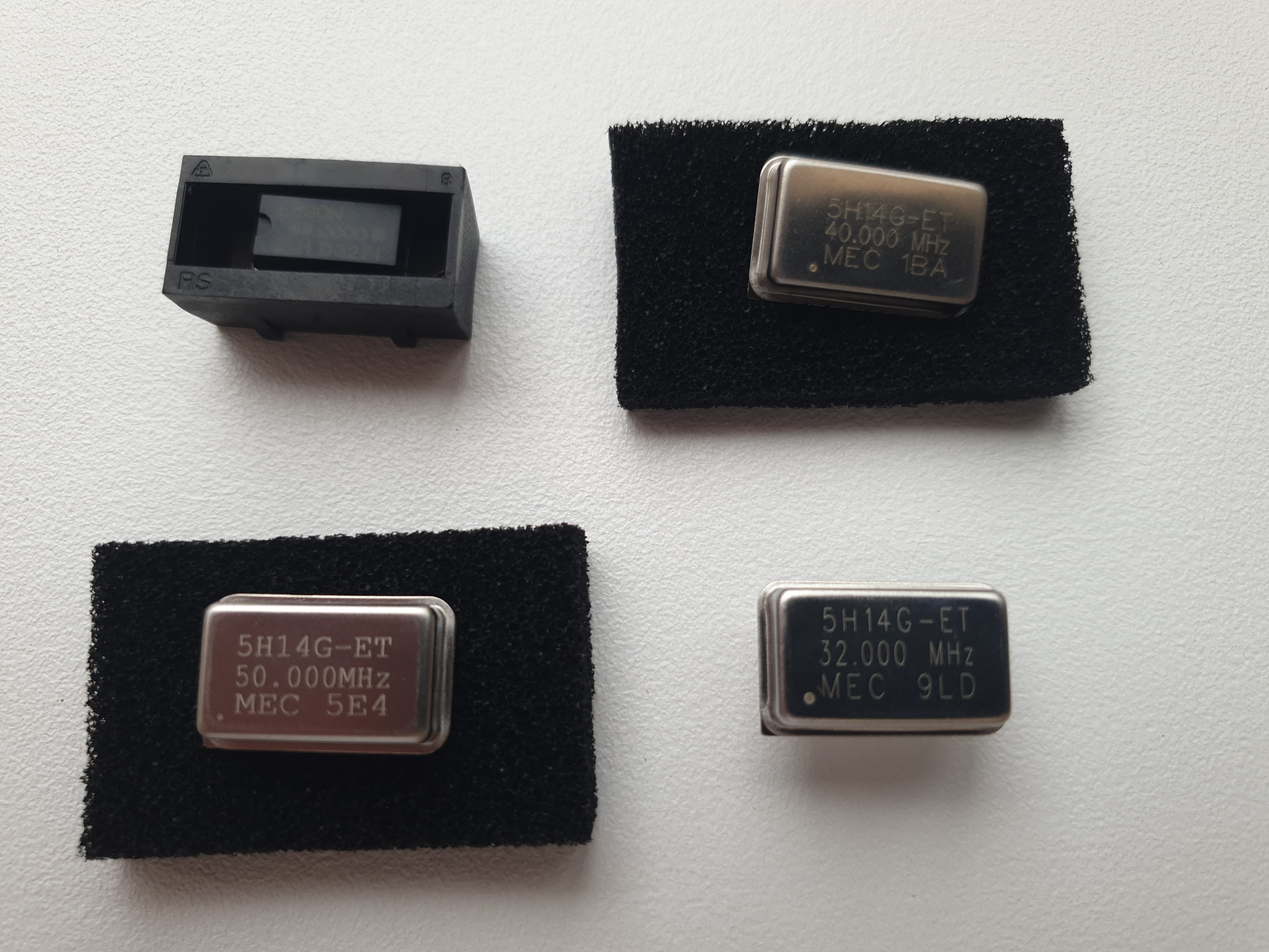 In this pile are crystals of 32, 40, 48 and 50 MHz flavours, which should permit running a CPU at 16, 20, 24 and 25 MHz respectively (the motherboard will divide the crystal frequency by 2 to provide a clock signal to the CPU). By the way, I added the 48 MHz crystal is here on the basis that my initial findings on the web of the HT12/A chipset struggled to run faster than 23.5 MHz, so I have a feeling this may be the one where it maxes out.