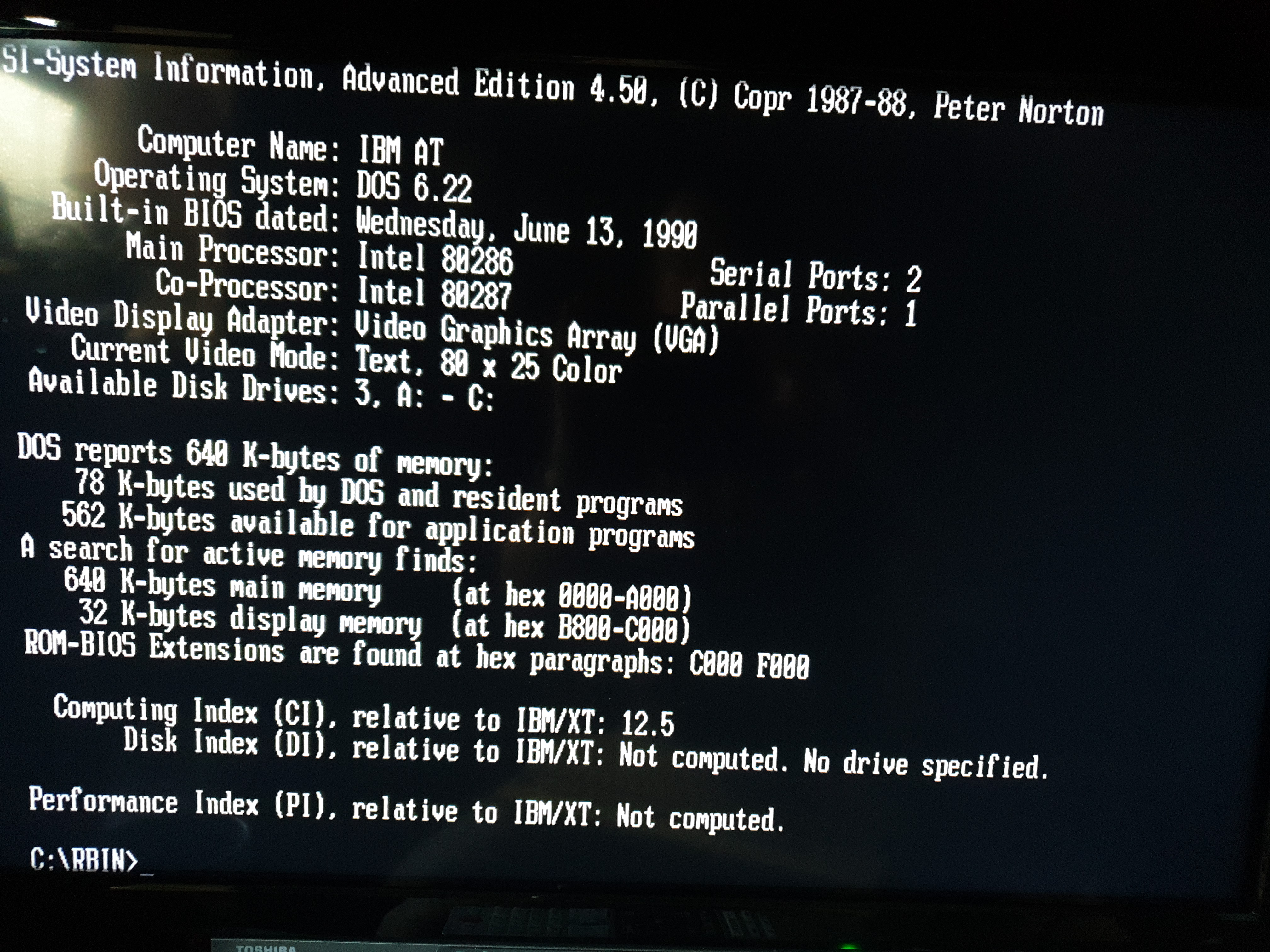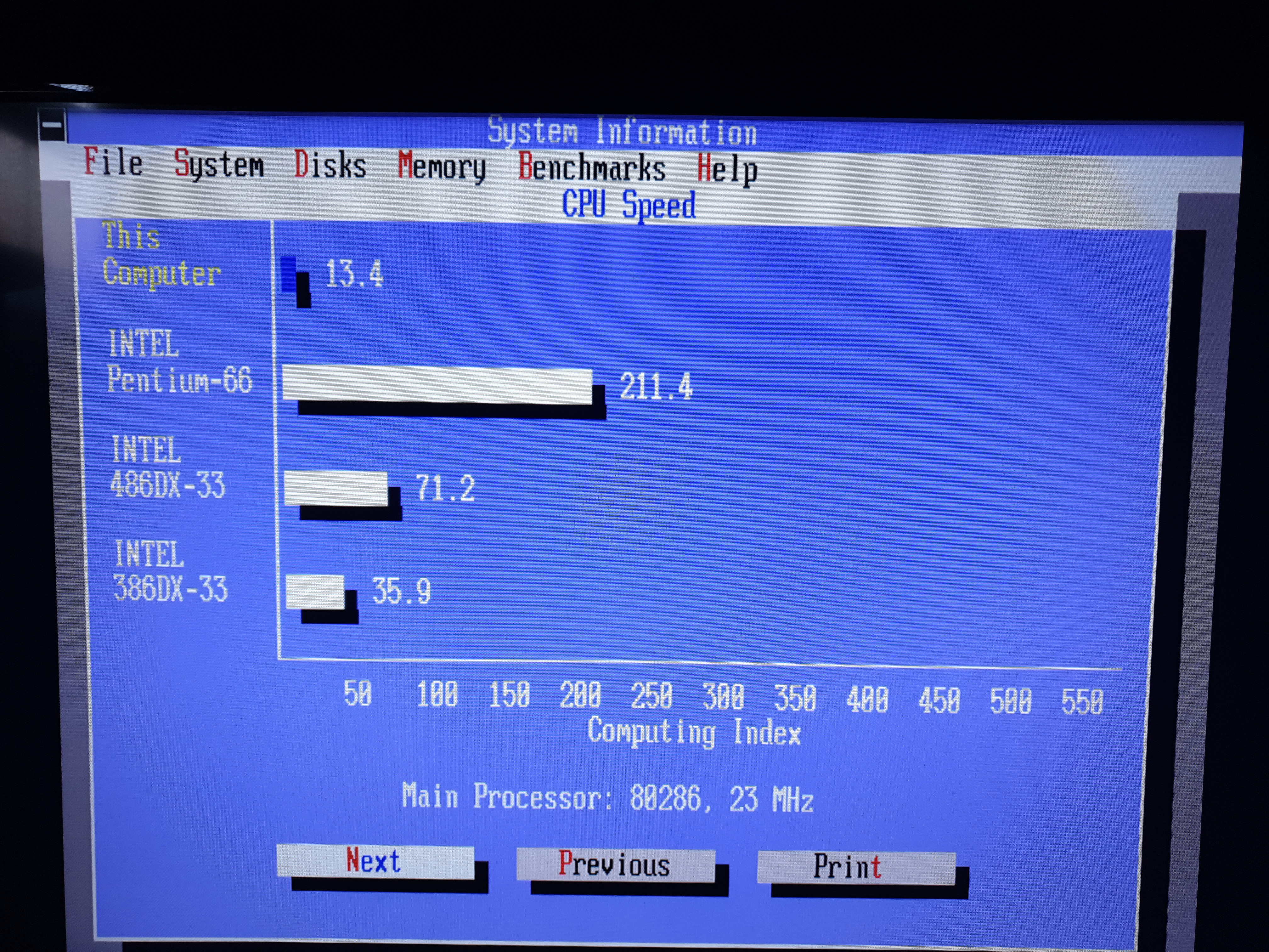 So starting off nice and easy, I installed the 32 MHz crystal, which will run the Harris 80286-25 at just 16 MHz. With 1 wait state I got these results: