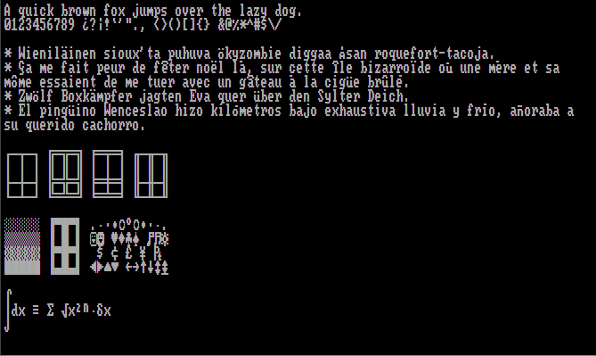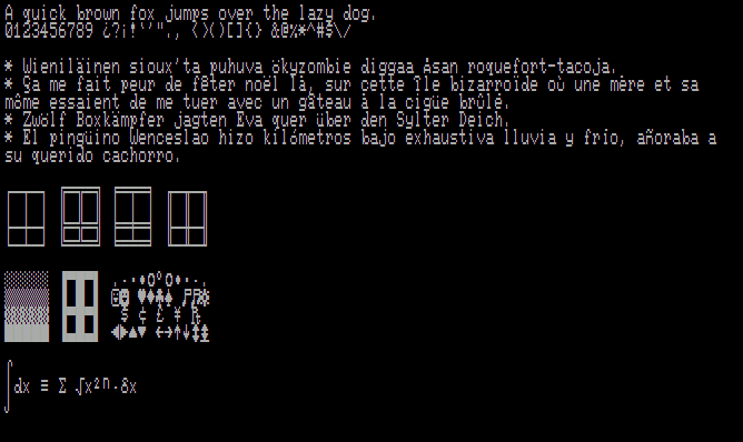 The MDA standard was intended to be used with a fixed frequency monitor, providing a 720 x 350 image format, although it was only capable of producing text output using its ROM-based character generator. These characters were "cells" of 9 x 14 pixels, so the image format is more accurately described as 25 lines by 80 characters each. This was known as 'mode 7', or 'mode 07h'. The character set was not redefinable. MDA cards that were sold in the USA contained what was called code page 437 - this was the set of characters that include all printable U.S. ASCII characters (32-126), extended codes for accented characters and some line drawing ones. For foreign markets, the ROM's character set was modified to suit Greek, Cyrillic, Hebrew and other characters.