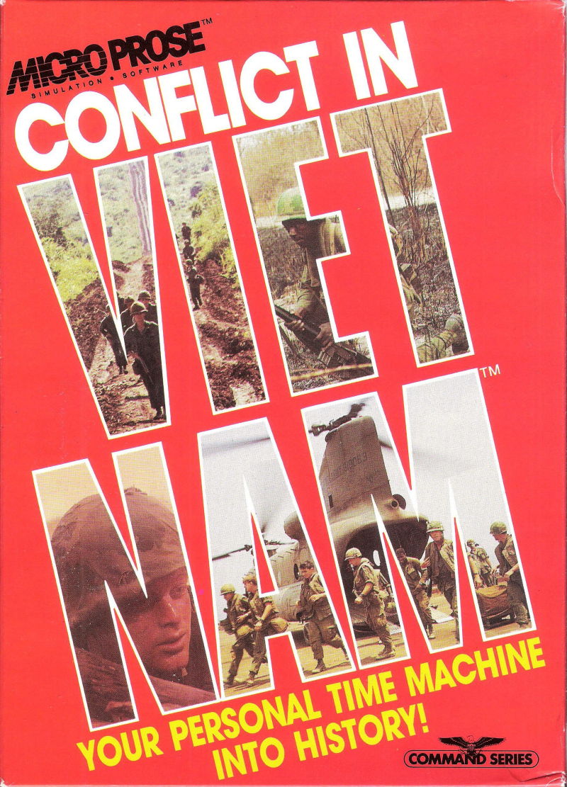 Conflict in Vietnam was developed this year and released in September. It was the third and final installment in Microprose's "Command" series of war games (the first two being Crusade in Europe and Decision in the Desert, both released in 1985). It simulates five key battles in Vietnam, beginning with the defeat of the French colonial army in 1954 and culminating in the 1972 victory of the Viet Cong against South Vietnam forces.