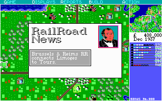 The objective of the game is to build and manage a railroad company by laying tracks, building stations, and buying and scheduling trains. The player acts as a railway entrepreneur and may start companies in any of four geographic locales: the Western United States, Northeast United States, Great Britain, or Continental Europe; the starting date varies depending on the map chosen. The company starts with one million dollars in capital, half as equity, half as a loan. The company may raise additional capital through the sale of bonds.