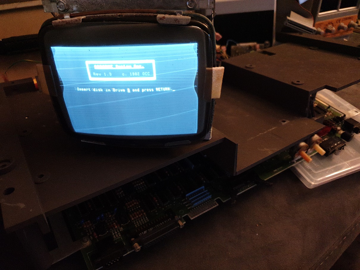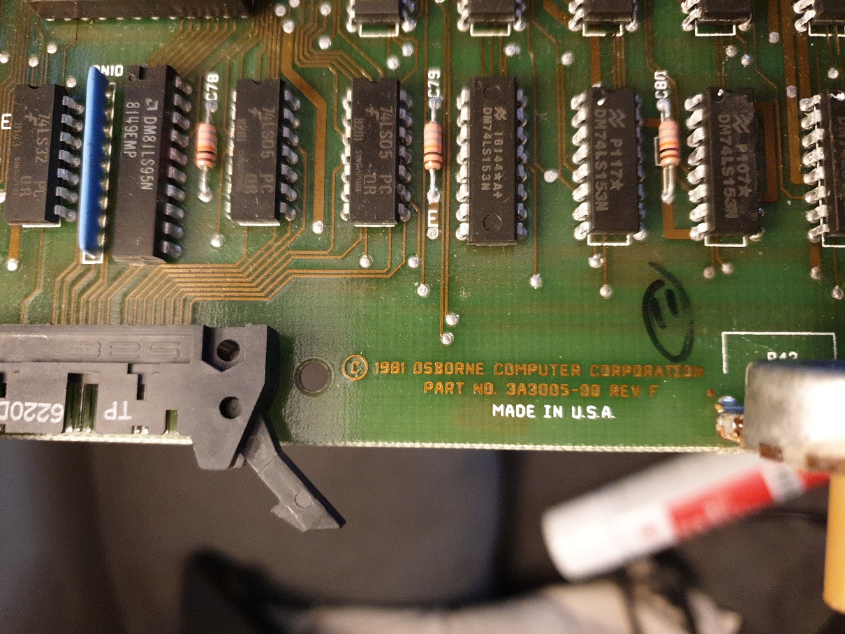 The problem I faced, however, was not a missing shunt - that was installed. I increased the brightness and contrast knobs on the front of the Osborne 1 to be sure this wasn't a simple case of low visibility - it wasn't.