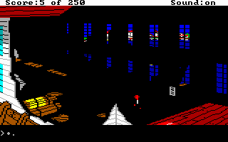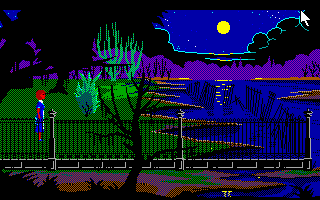 Outside is a scary place - the art and EGA colours chosen give the game a sense of atmosphere and foreboding...
