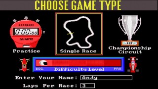 An addictive Formula One racing game that pre-dates almost everything else in this genre. The game didn't include every track in the 1988 Formula 1 season (actually about half), but it was nonetheless very fun to play and gave you a lot of options to start off easy and ramp up the difficulty level as you got better.