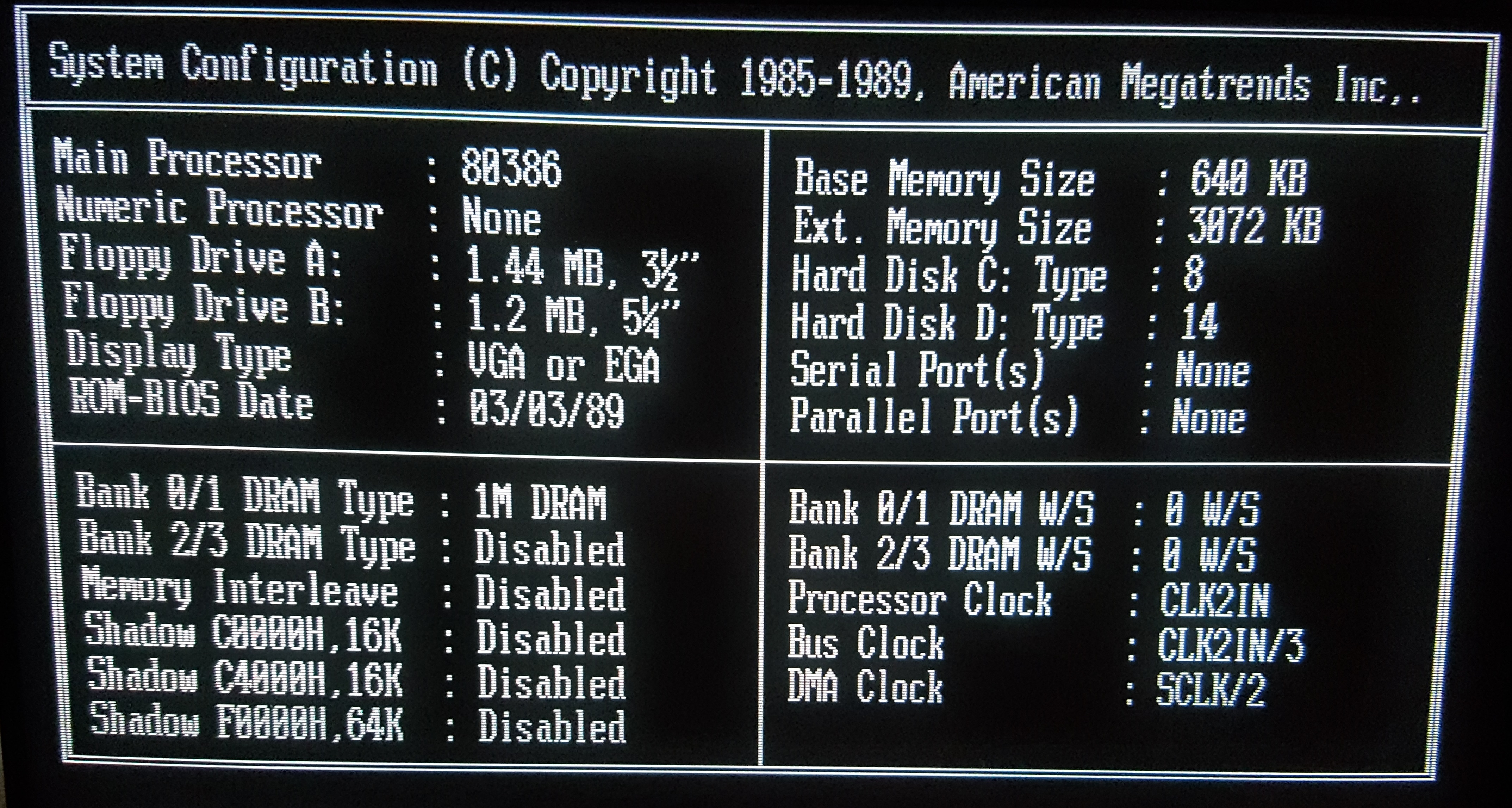OK, let's hit <ESC> and dig around in the 386 BIOS.