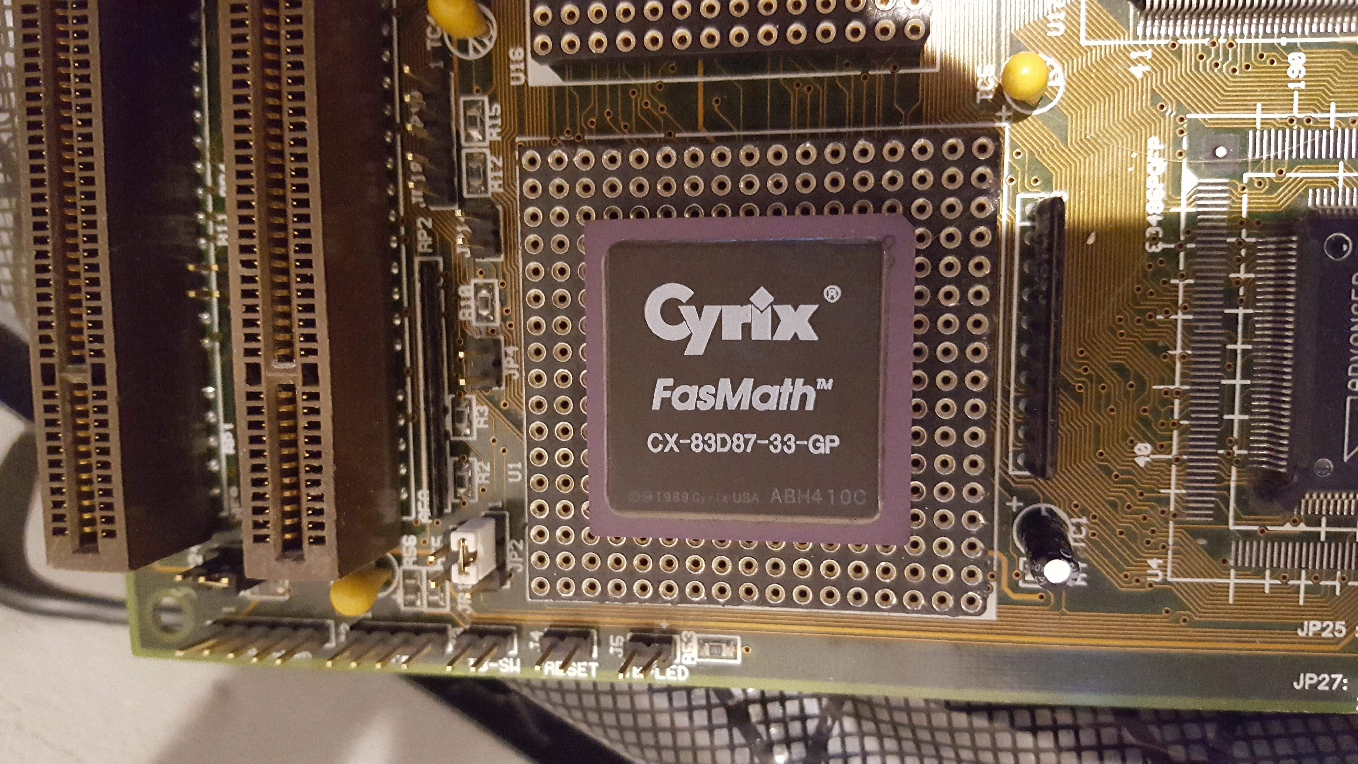 To test an FPU in the larger socket, I installed a Cyrix 83D87-33.