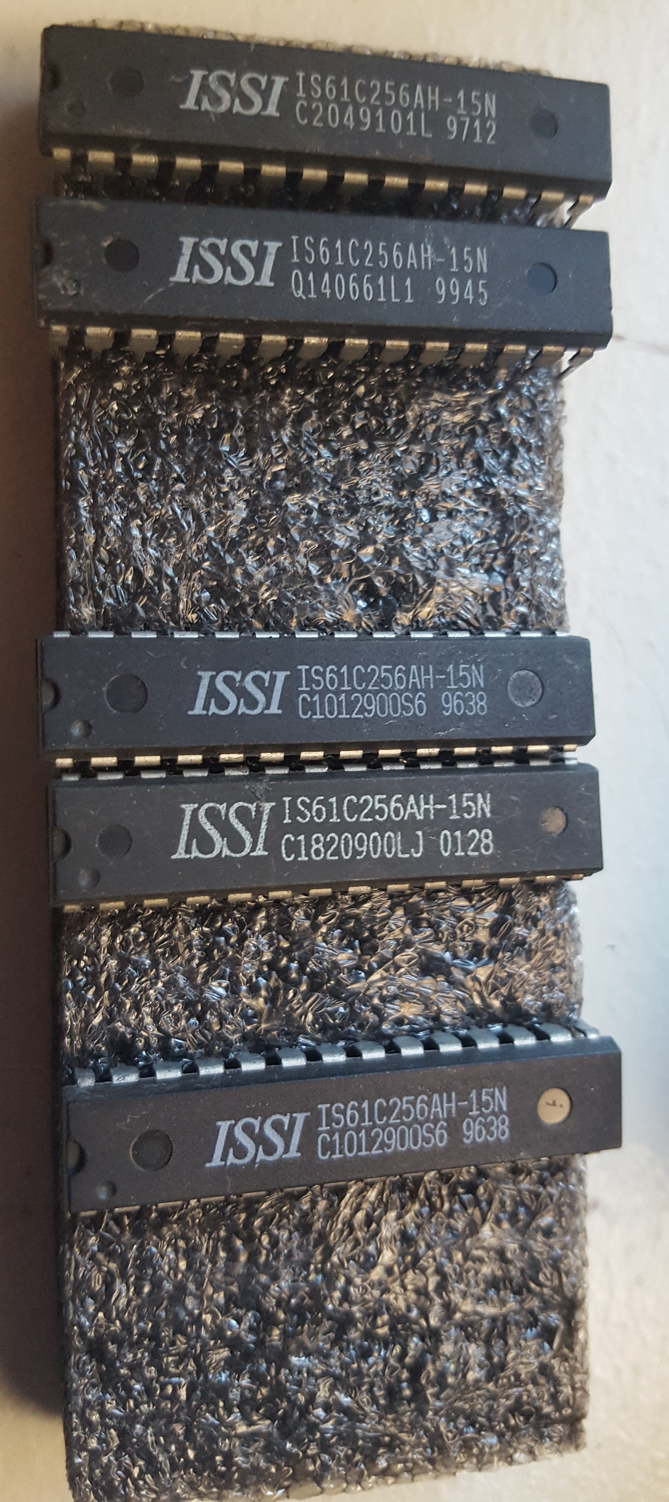 So I bought ten used 15ns cache chips from Ebay to replace the slower ones that came with the EXP3406. There are numerous articles on the web about fake chips, especially from China, so this was a bit of a gamble. Here is what I received for £11.98 delivered (forgive the pics - I had already installed 5 of them by the time I wrote this!):