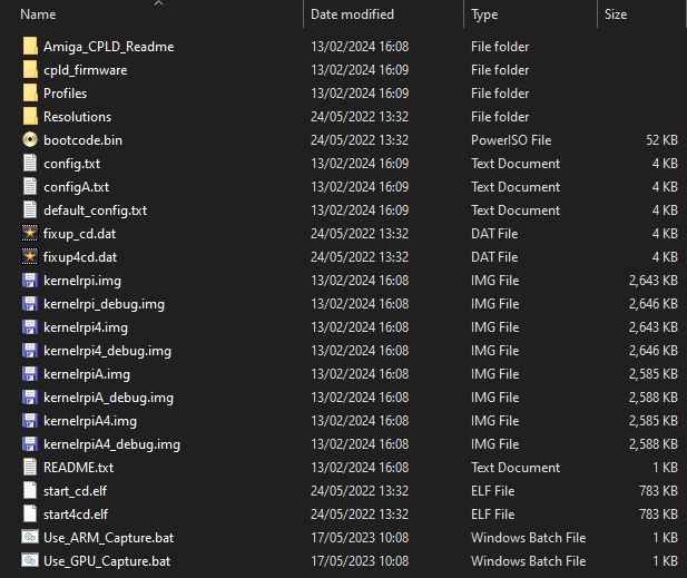 Step 2 is to download the latest stable release of RGBtoHDMI and unzip it into the root directory of the newly-formatted SD card. At the time of writing this article, we're up to the 20240213_e630d36f Release. When unzipped it's about 98 MB in size.