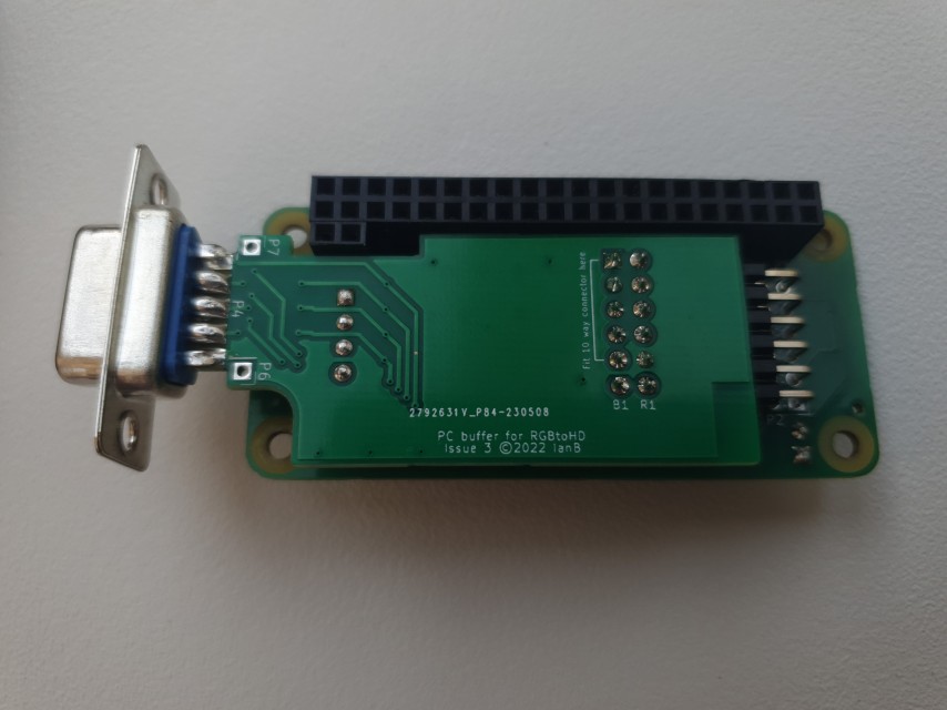 An optional add-on is a TTL buffer board. This buffers the input signals coming in, protects the CPLD from damage, and is an easy way to get the input video port(s) to the outside of the recommended plastic case for the RGBtoHDMI.