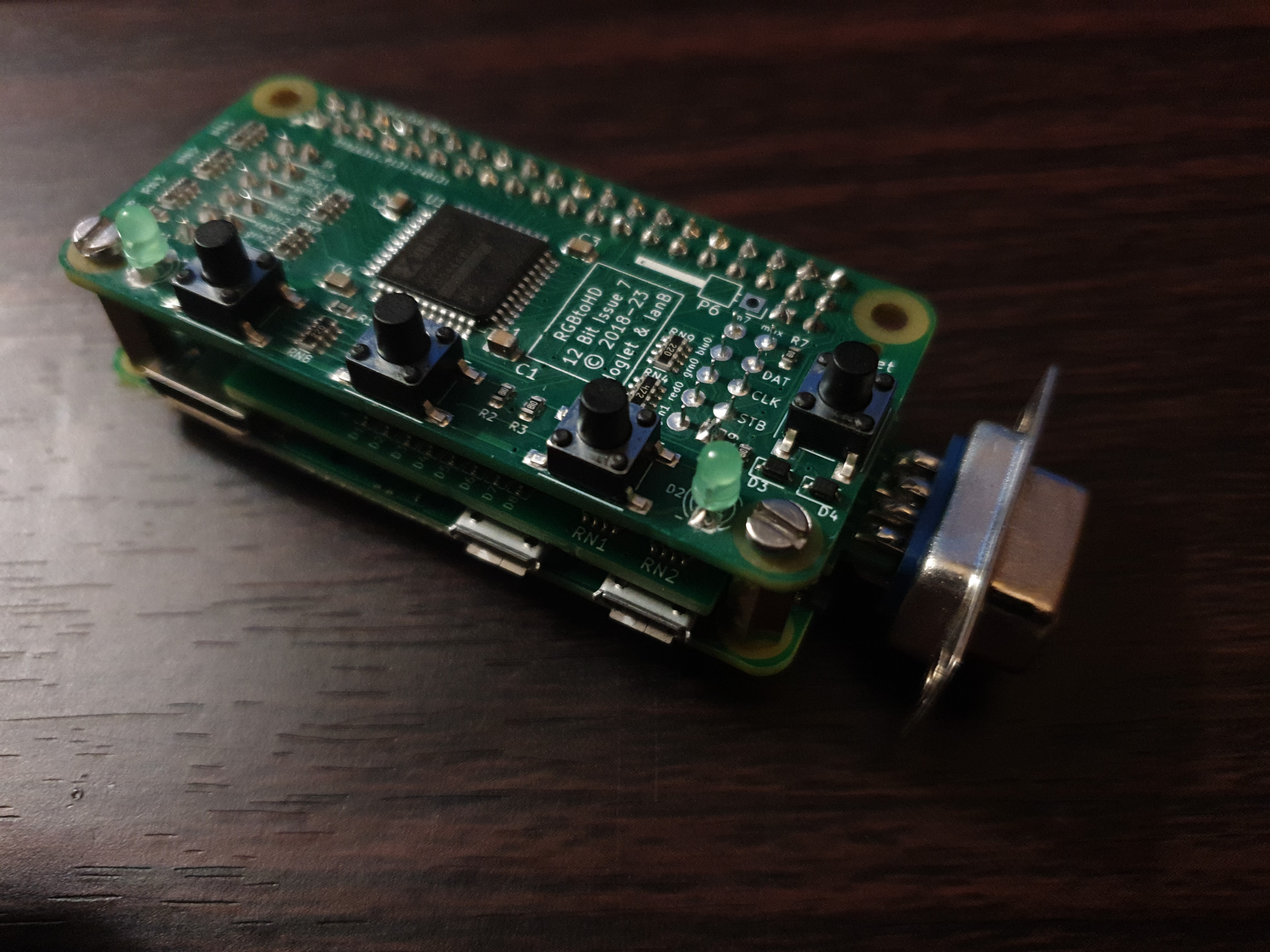 The main hardware for the project is a Raspberry Pi "Hat" that interfaces directly with a Raspberry Pi Zero. You can buy the RGBtoHDMI hat with a variety of input video interfaces to support Atari ST, Amiga, ZX Spectrum, Amstrad CPC and Acorn BBC, and of course, IBM PC. At its core, the hat has a Xilinx XC9572XL CPLD (Complex Programmable Logic Device) that is programmed with custom gate logic that replaces what would otherwise require many separate ICs.