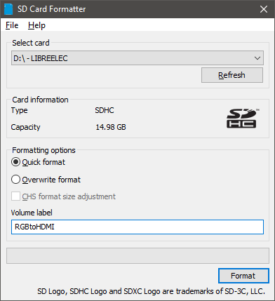 Step 1: Format a micro-SD card (2 GB minimum capacity) in your PC with an empty FAT32 file system.