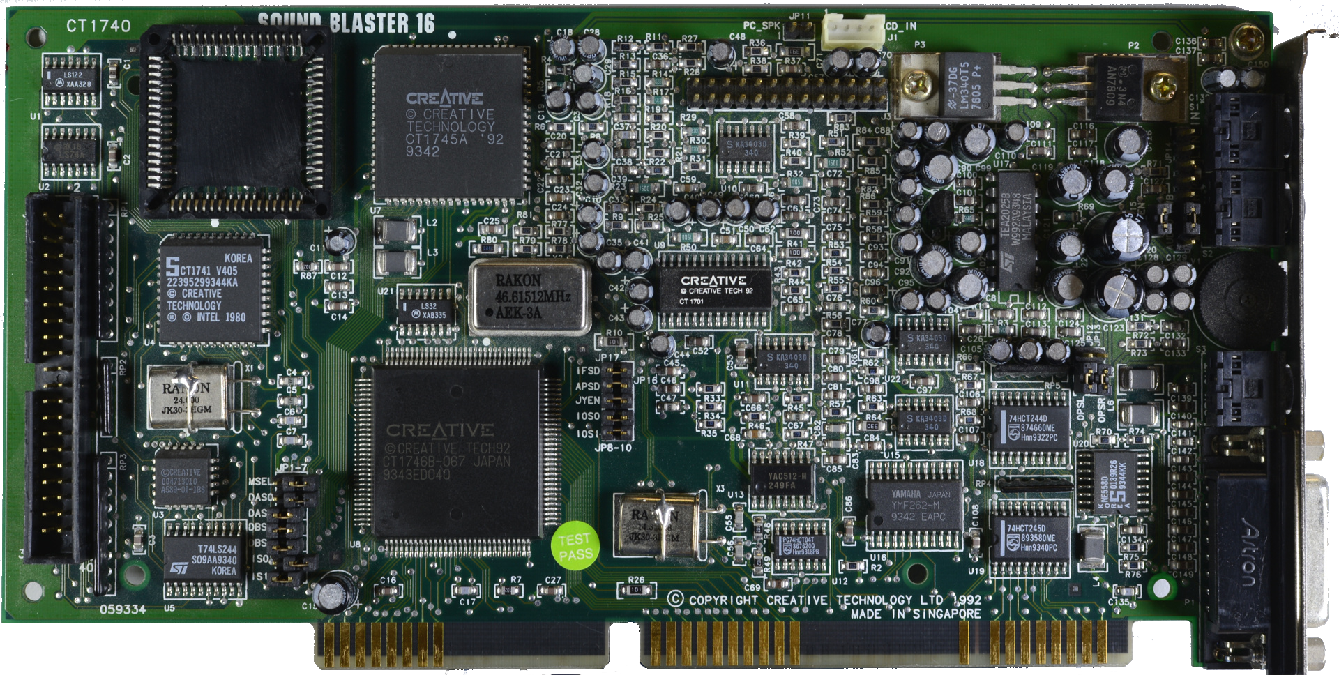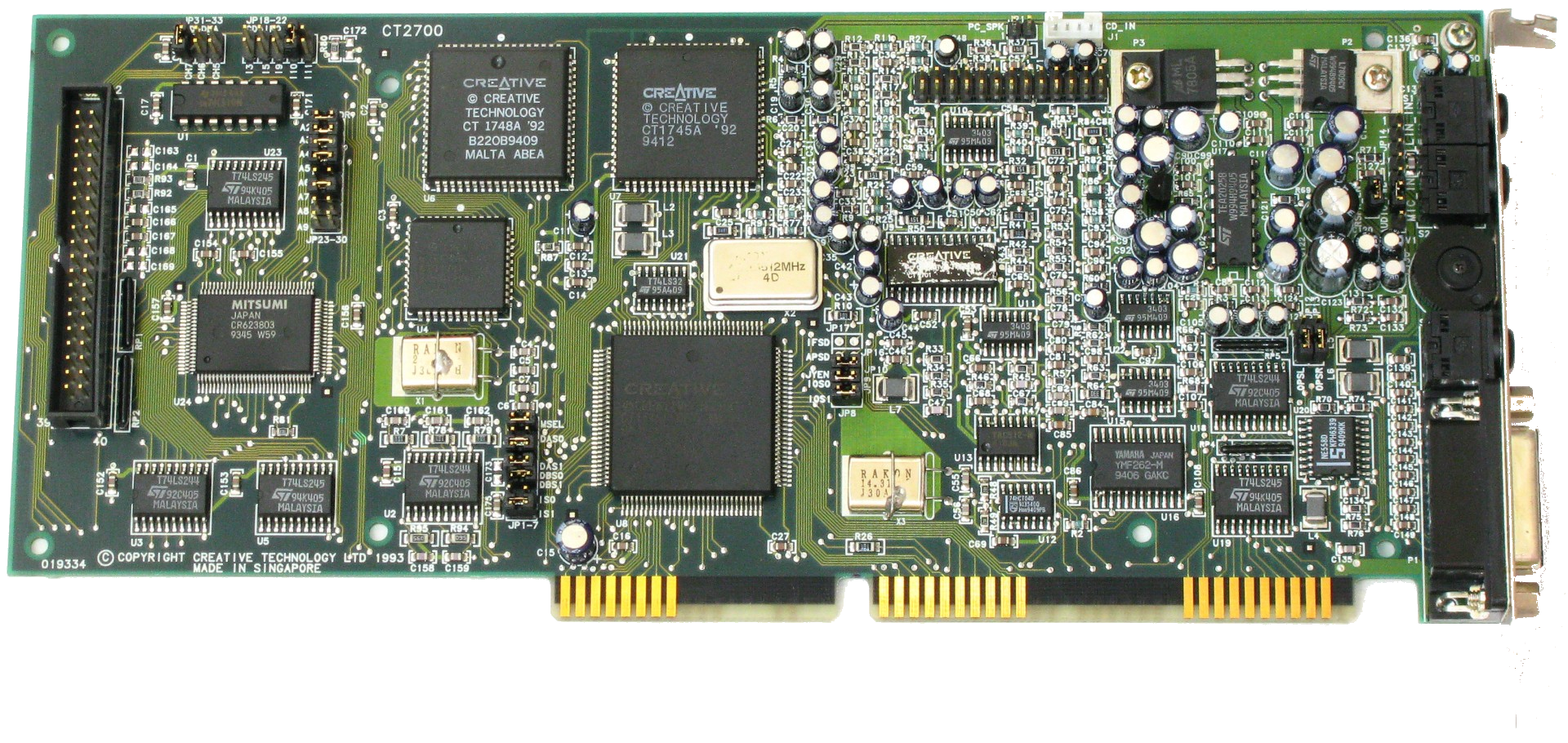 Creative Labs introduced the 2nd generation of Sound Blaster 16 cards in 1994, starting with the CT2230. The key difference from the 1st generation is that the Yamaha YMF262 was now gone as a discrete chip. Instead Creative Labs integrated the YMF262 into their own chip called "CT1747". These chips got the official "OPL" logo stamped on them, as they did contain the Yamaha circuitry inside. Also sadly gone was the hardware thumbwheel volume control.