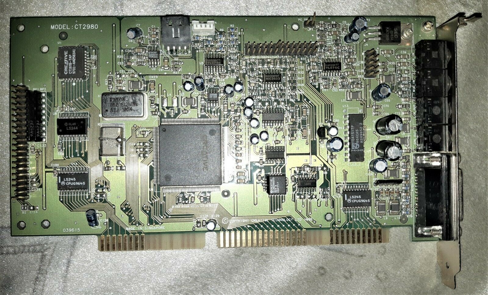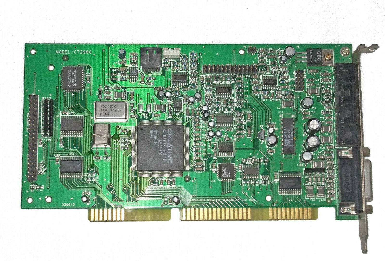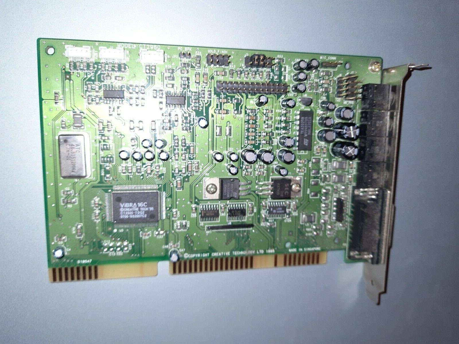 This is a Value edition card and is the OEM version of a CT2959. It has the ViBRA 16S chipset and a real full-size Yamaha YMF262 (OPL3) chip. This was the first Creative card to use their new CT1705 bus interface chip which provided it with full Plug & Play capability. Most other 2nd-generation SB16s had the bus interface logic embedded in the CT1747 chip or in the ViBRA chip (CT2501 or CT2504) on ViBRA cards.