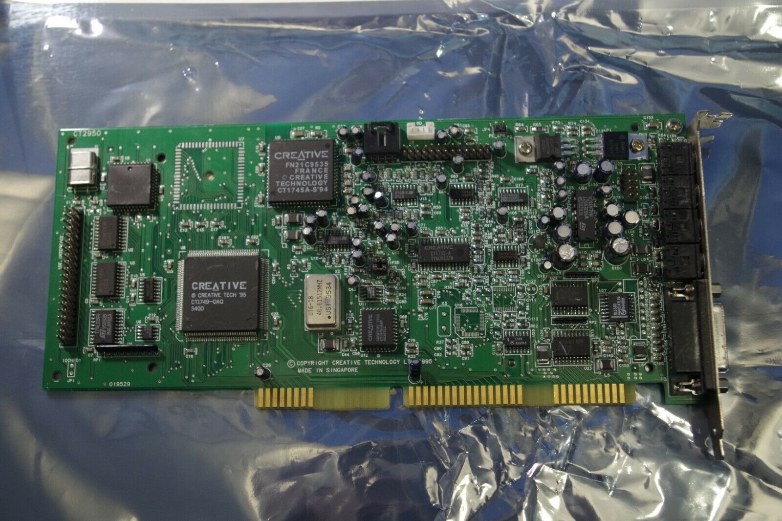 Some boards with revision 49517 removed the Line Out socket on the backplate as well as the IDE interface connector. This must have been an unknown submodel of the CT2800, e.g. CT2801 or CT2809, though still kept the base model CT2800 code on the silkscreen (which was standard behaviour with Creative's sound cards).