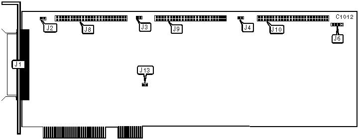 Jumpers J2, J3 and J4 enable other adapter cards on different computers to share devices on