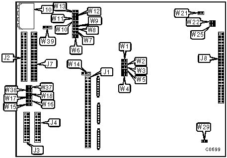 Note: Drive select 1 & 2 refer to the drive select jumper setting on the drive itself and should be set to 1 & 2 respectively. When W39/pins 1 & 2 closed drive select 4 must not be used. Jumpers W15, W16, W17, W18, W37, W38, W39 refer to flexible disk drives and apply only to models 7200 & 7400. | |||