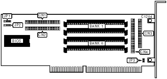 Some versions of this board have two 512KB x 8 DRAM chips mounted in place of Bank 0. In such a case the board will work without additional memory. In all other cases a pair of 256KB, 1MB, or 4MB SIMM modules must be installed in Bank 0 for the board to function. |