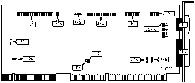 Note: Designated pins are in the closed position. The settings of COM3, COM4/ COM1, COM4/ COM2, COM3/ can be implemented only on card with M5105A4E I/O chip. | |||||||