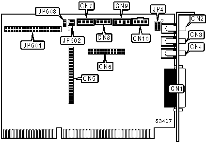 MIDI/game port, CD audio in (4), microphone in, line in, line/speaker out, wavetable, Adlib media connector, EIDE interface