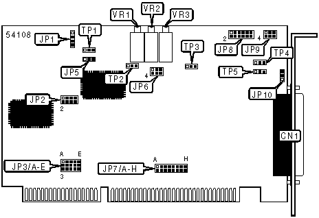 A total of 256 base address settings are available. The jumpers are a binary representation of the decimal memory addresses. JP7/A is the Most Significant Bit and switch JP7/H is the Least Significant Bit. The switches have the following decimal values: JP7/A=2048, JP7/B=1024, JP7/C=512, JP7/D=256, JP7/E=128, JP7/F=64, JP7/G=32, JP7/H=16. Turn off the switches and add the values of the switches to obtain the correct memory address. (Open=1, Closed=0)
