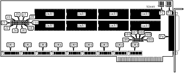 Note:When using the daisy-chain connectors, the board may only use one interrupt. Up to four boards may be daisy-chained. Daisy-chaining boards to operate as one unit will only function under MS-DOS and compatible operating systems.