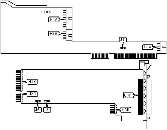 Note:On RS-422 versions of this board, the jumpers are labeled J3 and J4, respectively.