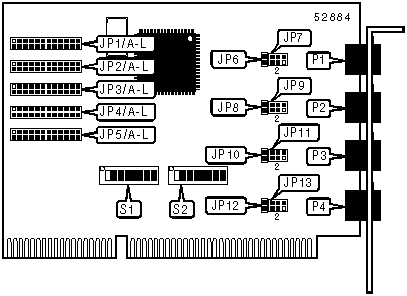 Note:JP1 sets the address for port 1. The settings for JP2 through JP4 are identical and set the addresses for ports 2 through 4, respectively. | |||||||