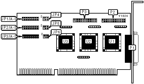 Model SUN-6334-2 (Ex-4012) only supports two parallel ports, P1 and P2. Consequently, only two socketed chips (U1 and U2) are installed. Jumpers JP3 and JP6 ignored.