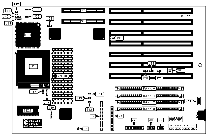 32-bit VESA local bus slots (2), floppy drive interface,