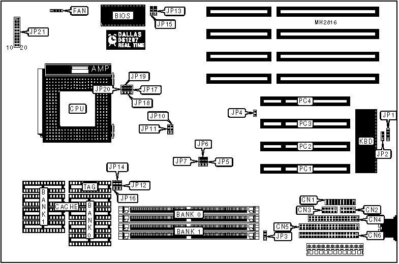 32-bit PCI slots (4), floppy drive interface, green PC connector, IDE interfaces (2), parallel port, serial ports (2)