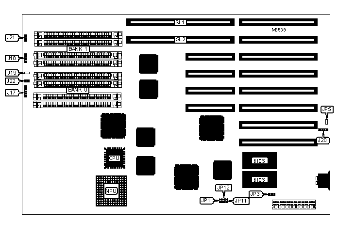 Note: If all 4 banks are populated, memory card must be set as banks 2 & 3. Jumpers JP1 & JP2 are incorrectly labeled in the card. The correct label should read banks selection.