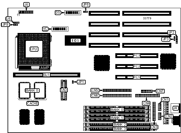 Note: Board accepts EDO memory. Banks are interchangeable. If using this configuration, DIMM sockets must be empty. | ||