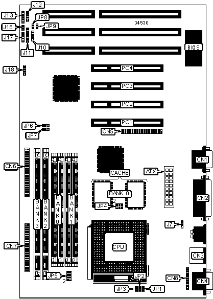 Note: Board accepts EDO memory. Banks are interchangeable.