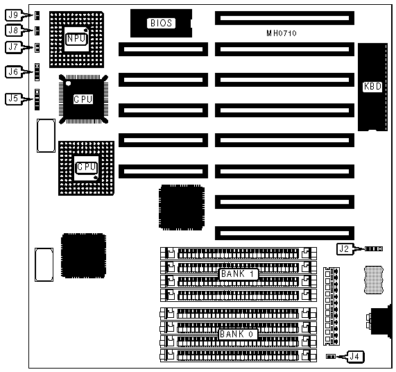 Note: Board may have either the AMD surface mounted CPU or an Intel-type socketed 80386 CPU.