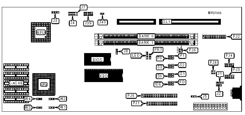 Note:The cache on the MINIMAX 333 is soldered on the board and is non configurable. The cache comes in 32K, 64K, and 128K. Jumpers W1 -W4 are for cache configuration that is not available on this board, but is available on other boards made by this manufacturer. ( a 486 version of the MINIMAX 333) |