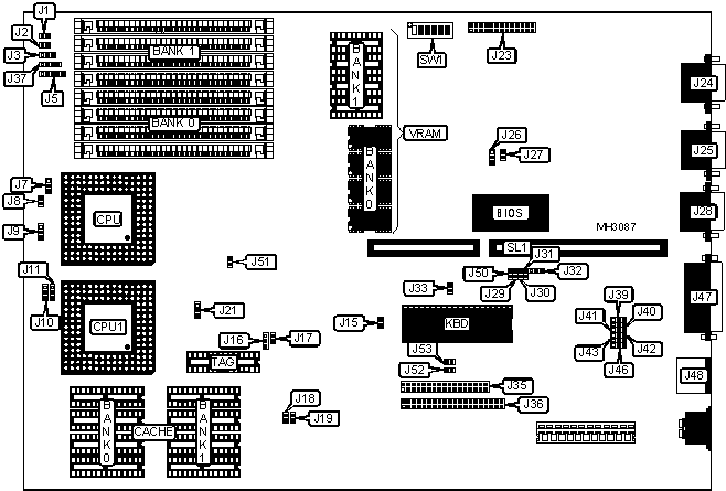 Note: An 80478SX or P23T can be installed at CPU1.