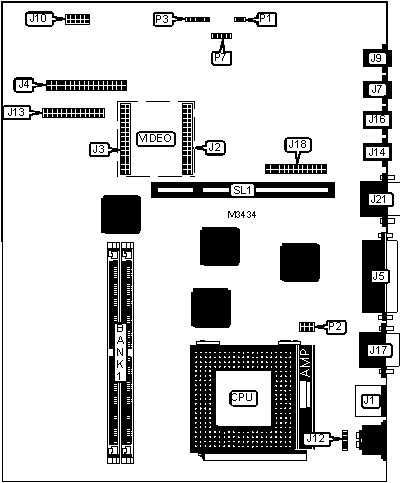 Note: Bank 0 is factory installed and is not configurable. The location is unidentified. Board also accepts x 32 SIMMs. Board accepts EDO memory.