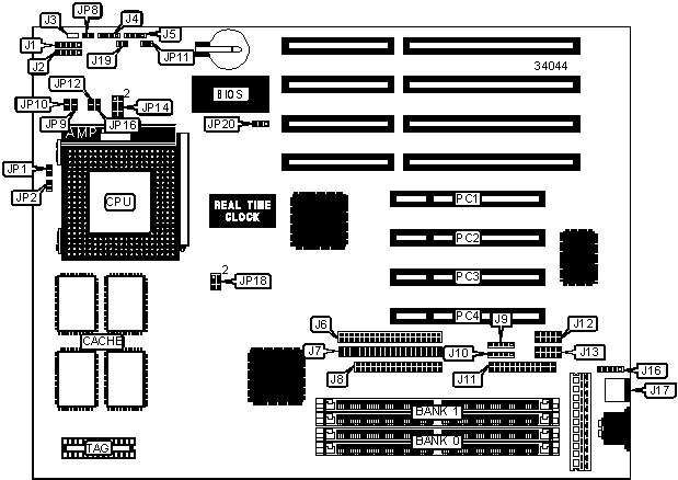 Note: Board accepts EDO memory. Board also accepts x 32 SIMMs.