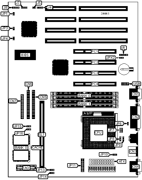 Note: Board accepts EDO memory. Board also accepts x 32 SIMMs. Banks are interchangeable. | ||
