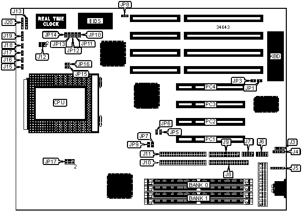 Note: Board accepts EDO memory. Board also accepts x 32 SIMMs. | ||