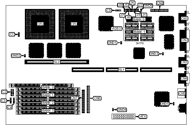Floppy drive interface, IDE interface, parallel port, PS/2 mouse port, serial ports (2), VGA feature connector, VGA port, riser slot, cache slot, ATX power connector |