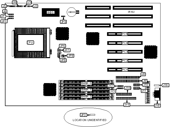 Note: Board accepts EDO memory. Memory installed in Banks 0, 1 & 2 is interchangeable.