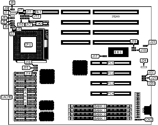 32-bit VESA local bus slot, 32-bit PCI slots (4), PS/2 mouse interface