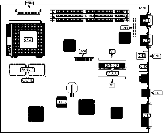 Ethernet 10/100BaseT connector, parallel port, PS/2 mouse port, serial port, VGA feature connector, VGA port, VRM connector, USB connectors (2) |