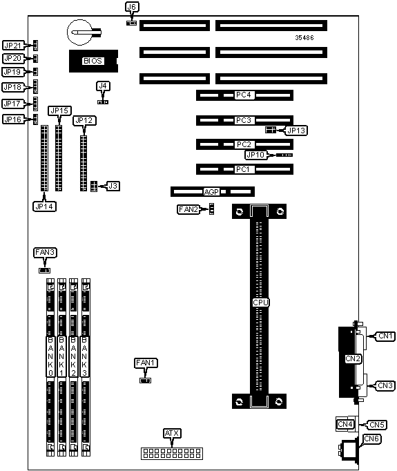 32-bit PCI slots (4), floppy drive interface, green PC connector, IDE interface, parallel port, PS/2 mouse port, serial ports (2),