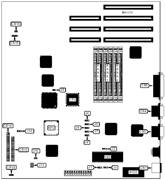 Parallel port, serial port, floppy drive interface, IDE interface, bus mouse port, VGA port |