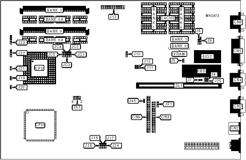 PS/2 mouse port, parallel port, serial ports (2), VGA port, VGA feature connector, floppy drive interface, IDE interface, riser slot