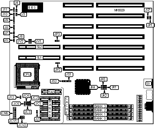 Daughter board connector, PS/2 mouse port, green PC connector, 32-bit VESA local bus slots (2)