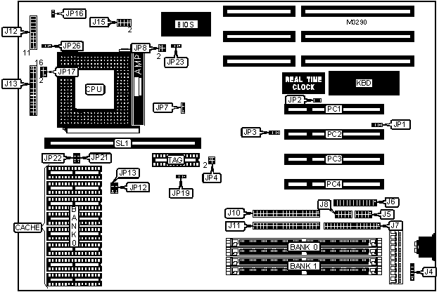 32-bit PCI slots (4), floppy drive interface, green PC connector, IDE interfaces (2), parallel port, PS/2 mouse interface, serial ports (2), VRM connector, cache slot, IR connector