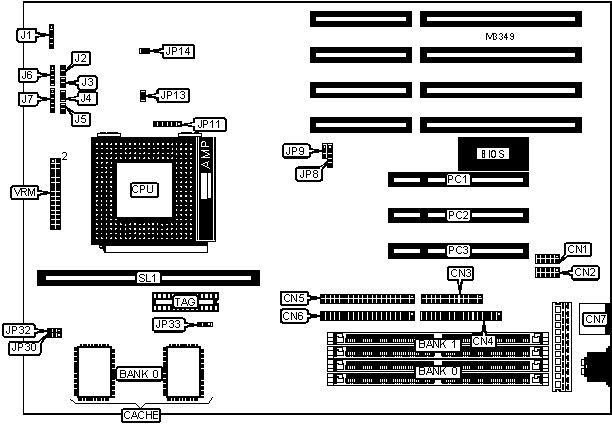 32-bit PCI slots (3), floppy drive interface, green PC connector, IDE interfaces (2), parallel port, PS/2 mouse port, serial ports (2), cache slot, IR connector |